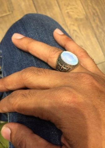 Ornaments made of stones are popular with women, but adular men are also a great choice for men. He has an important property - the protection of the owner on the road. A man who spends a lot of time behind the wheel can be presented with a keychain with a mineral that will serve him as an excellent talisman. If a man is deprived of women's attention and has not yet met the other half, then it is desirable for him to wear a ring with a gem on his right hand, and then attention from the fair sex will be provided to him. Wearing a ring on the right hand will protect the business man from conflicts and neutralize the negative of competitors.
