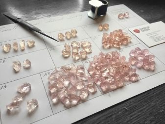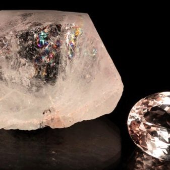 In the structure of morganite there may be inclusions - bubbles of gases, liquids. Such a mineral will be opaque and have a lower cost than the transparent counterpart. In addition, a sparrow without such inclusions is easier to cut, for which jewelers appreciate more.