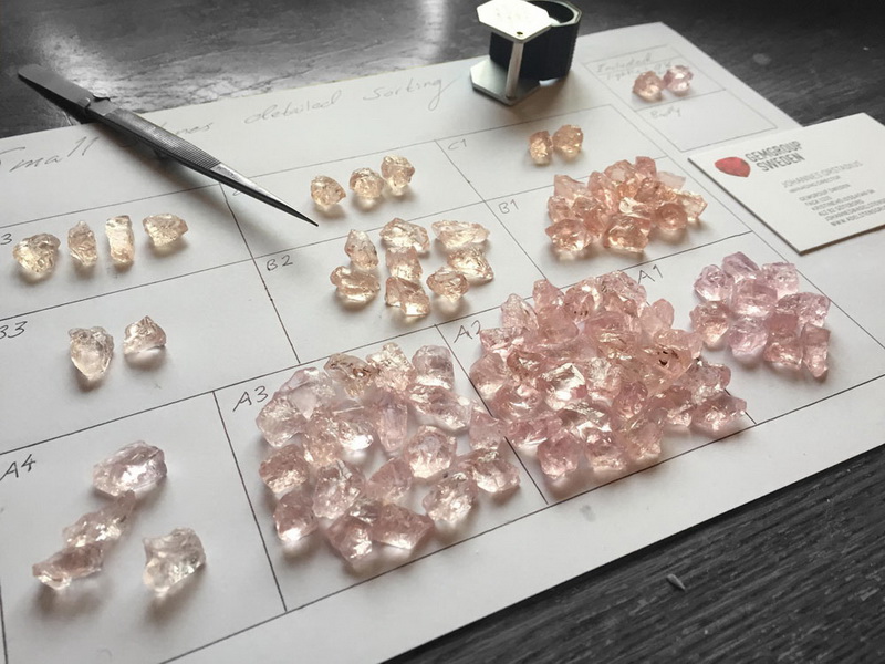After washing, the morganite is wiped with a soft cloth, polished and finally dried on an open surface.