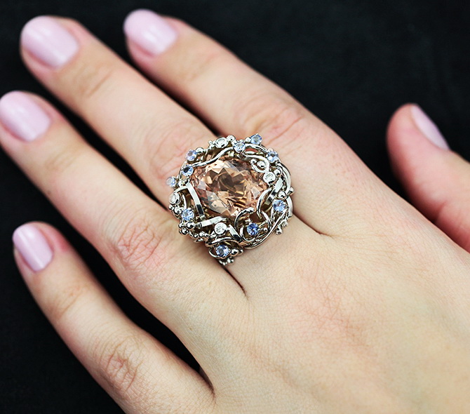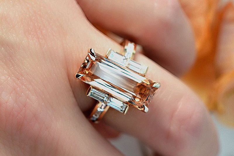 In addition, morganite is used in cocktail rings with a large stone framed in gold or silver.