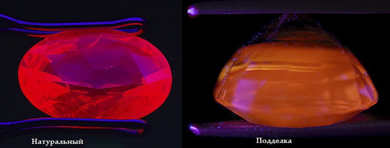 One of them is reduced to the direction of the X-ray sparrow - the stone immediately becomes saturated red. When heated, the original, on the contrary, will lose its color and become transparent.