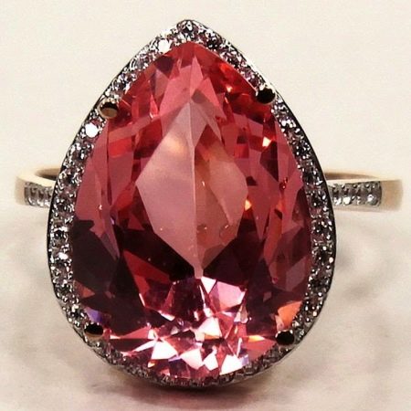 Vorobyevit looks spectacular, framed in white gold next to diamonds. The latter emphasize and enhance the pink hues of the mineral and its radiance.
