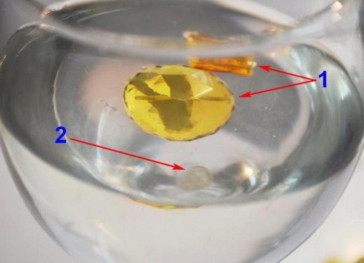 If you drop the original into the bromoform solution, it will remain floating on the surface. This is due to the lower density of the mineral in comparison with bromoform. Imitation at the same check will sink.