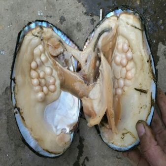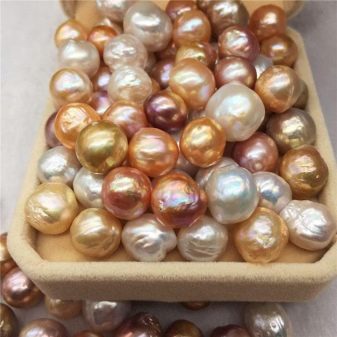 - Freshwater. Pearls of this type are mined from mollusks that live in rivers and lakes. The number of mother-of-pearl stones in one shell can vary from 12 to 16 pieces. They have a dimmer color, their brilliance is not evident, being muffled. The shape of such a pearl can vary greatly.