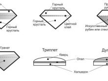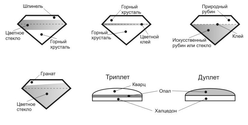 - Doublets This class of crystals consists of several layers, called doublets or triplets. The top layer of the gem is a natural sapphire, under it lies a cheap equivalent. Both synthetic options, and gems, more favorable at the price, are used. If you carefully consider the product under a magnifying glass, you can find the gluing.