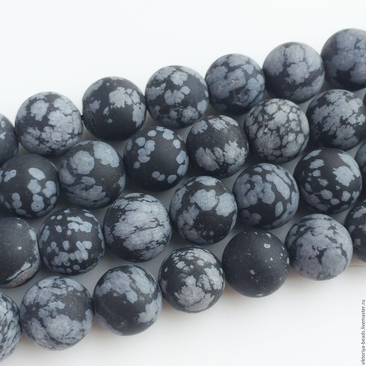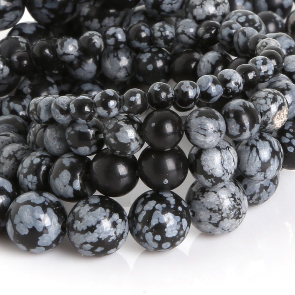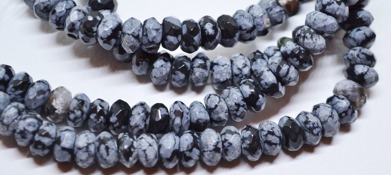 - Snow obsidian considered one of the most beautiful views of this stone. On a rich velvety black background, the surface of the stone is chaotically scattered dull-white blotches of cristobalite, which have different sizes and look like snowflakes. Therefore, the stone and received such a name.