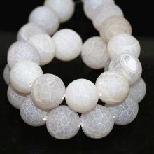 - White onyx. Colorless or translucent mineral of gray, snow-white or milky color. On the surface or inside the mineral one can notice characteristic marble cracks of orange or rusty color.