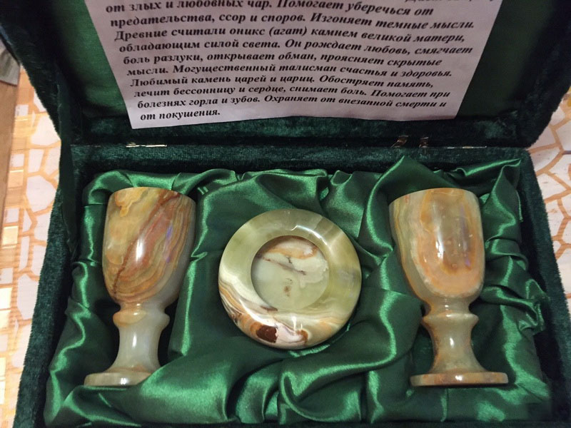 - Elements of dishes, sets and kitchenware from onyx. It is believed that such items can enhance the taste of food, make it more rich and pleasant.