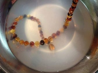 To create a saline solution, it will be sufficient to use an ordinary glass of heated water and 3 teaspoons of salt. It is relatively easy to check the status of amber by rubbing it against a natural cloth, for example, silk or wool.