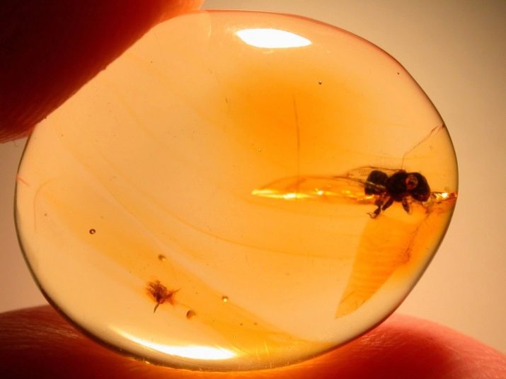 If an unusual form of the mineral is acquired with insects or plant elements frozen inside, then a light pebble should be carefully studied, since they are often forged. All third-party objects should be located in a free and natural pose. In the case of insects, this should remind them that they were trying to free themselves.