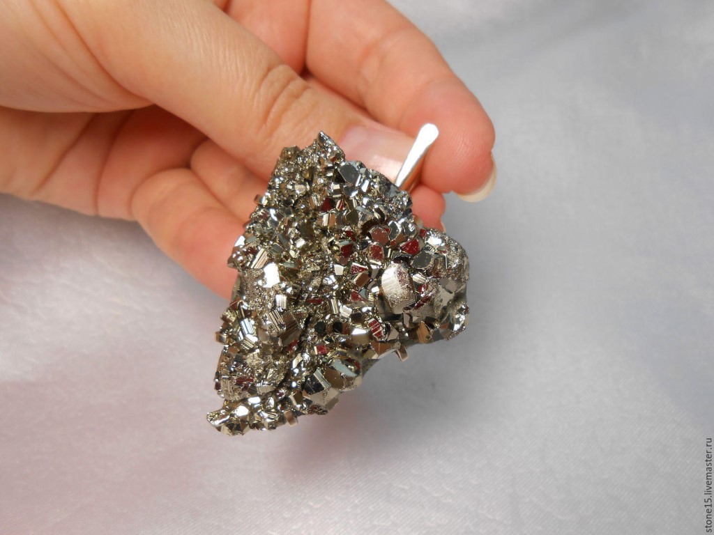So, it should be noted that pyrite is very sensitive to environmental conditions: it does not tolerate moisture, high temperature, and mechanical shock. To maintain the appearance of the stone as long as possible, such effects should be avoided. However, even in the case of careful socks and meticulous care, the decoration made from pyrite will not serve you for long.