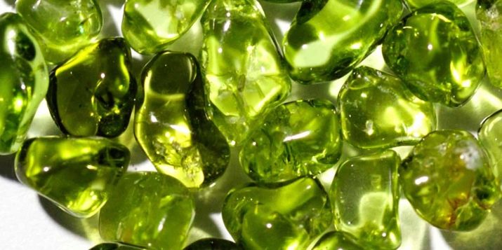 - Chrysolite is a stone of volcanic origin. All samples of this stone have a green shade, but with different inclusions. Due to its special structure (high refractive index) it can not only overflow, but also shine under the rays of the sun. It is very brittle.