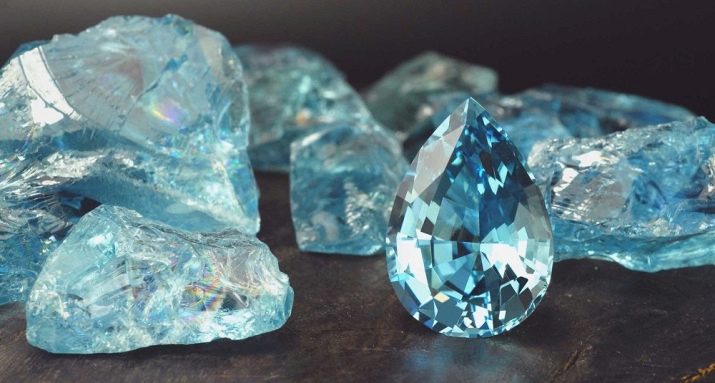 - Aquamarine has a characteristic bluish-green color. Especially the stone under the rays of the sun shimmers with all the shades of these two colors. If earlier it was used for incrustation of crowns, now it is mainly used for mandrel lenses.