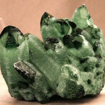 The color of the stone is defined as shades of green. It can be light green, emerald green, rich green, lemon, colorless. Most often the stone loses its color under the influence of the sun. The hardness is 7 out of 10, the density is 2, 65 g / cm ³, the mineral is rather fragile. There is no cohesiveness, the fracture is cancerous, the syngony is trigonal.