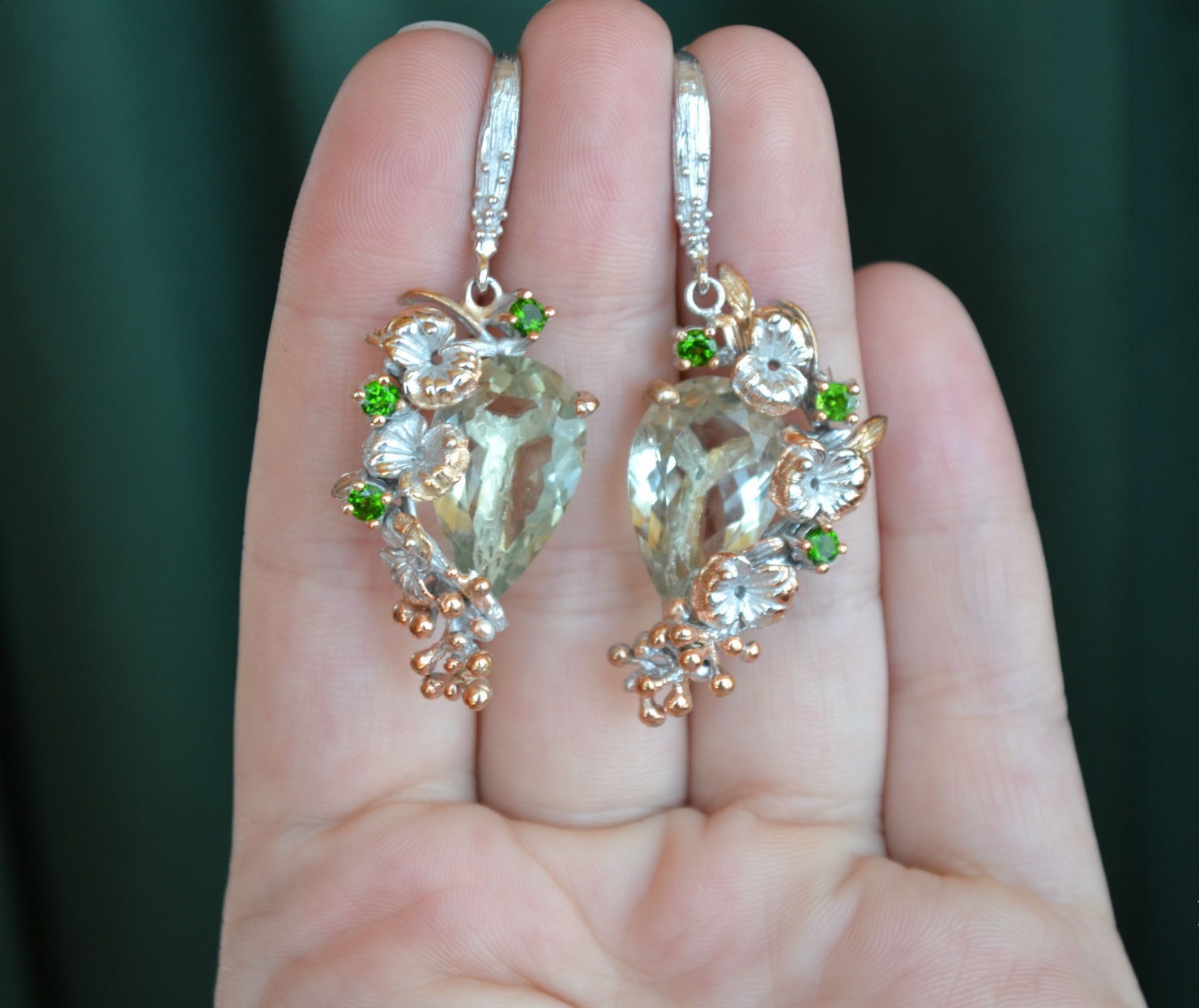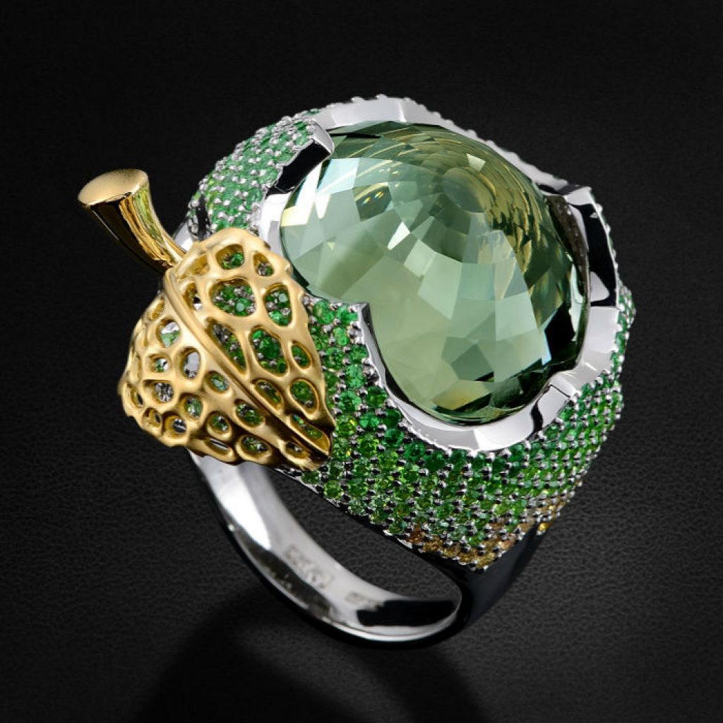 Over time, even with a tidy sock, the jewelry becomes dirty and loses its original appearance, therefore, it is necessary to clean the jewelry regularly. Remove rings every day before washing dishes, visiting the bathroom, at the end of the day, be sure to wipe it with a flannel cloth. Earrings must be protected from the effects of hairspray and hot hair dryer. Do not store products from prasiolite in the light, as this will entail a decrease in the intensity of color.