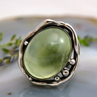 The cost of prenit is small, so it is not often used in the manufacture of jewelry. The reason is that the stone belongs to the third order of precious rocks. There are three types of mineral. It is translucent, translucent and transparent. The latter is considered the rarest species, and therefore is valued much higher.