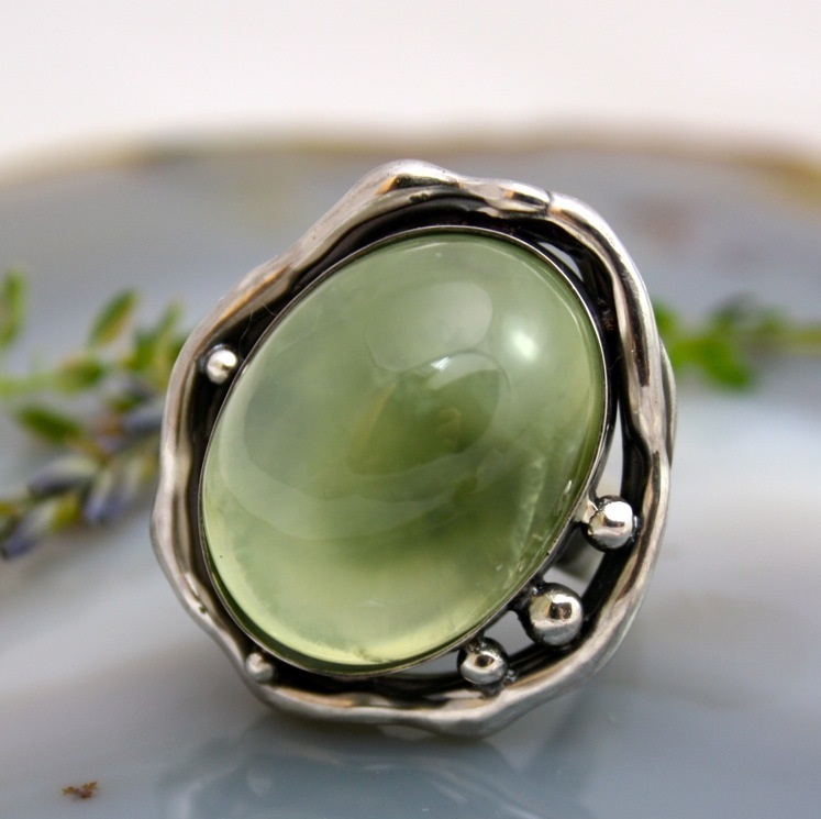 Most often in the course goes the Australian stone. Its purity and high quality minimizes processing, which means it preserves the original beauty of the mineral and conveys it to the product. The soft glow of prehnit and pleasant green color can reduce eye strain. Just a few minutes to look at this stone to feel how the eyes "rest", the discomfort disappears, some unpleasant sensations caused by long work, for example, at the computer.