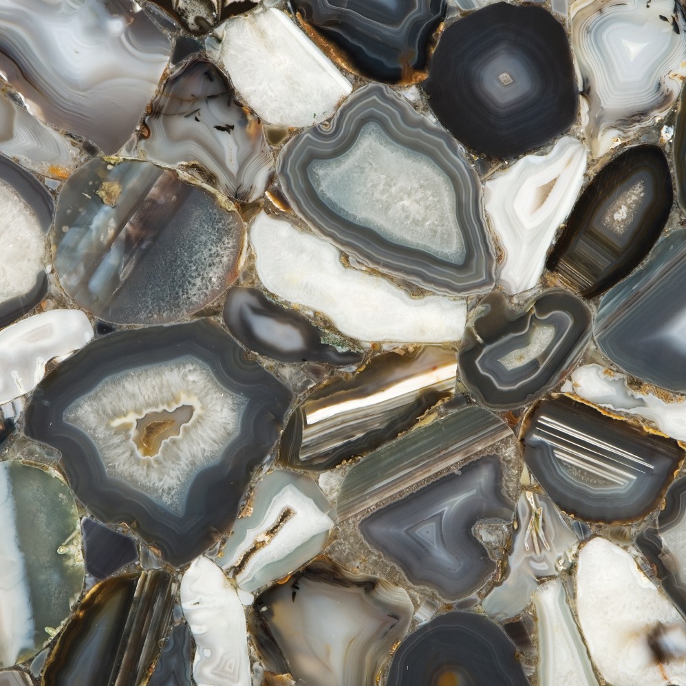 Agate belongs to the chalcedony group. The main chemical compound in the composition of agate is silica. The layered structure of this stone is due to the duration and cyclical nature of the process of formation, and there is still no generally accepted theory of the origin of agate-bearing rocks. The raw surface of agate is matt, to make it shine the stones are ground and polished. The degree of transparency of the mineral varies from completely opaque to smoky (partially translucent).