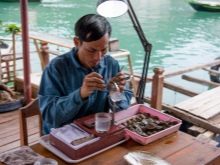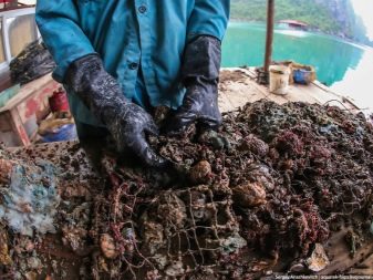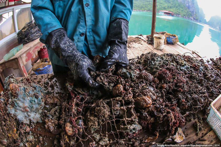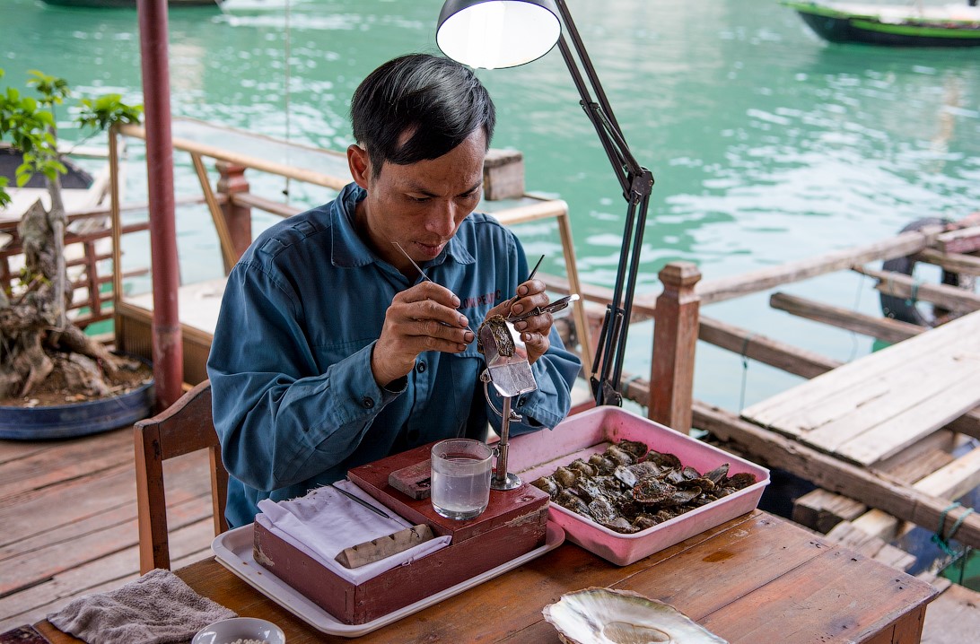 In Vietnam, there are special farms for growing cultivated pearls. In special cages on the warm shallow water in the ocean, mollusk is bred - pearl oyster.