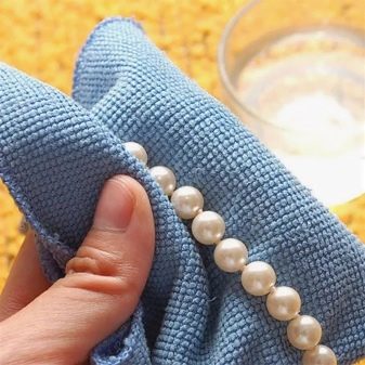 - Another way to revitalize the decoration is to use starch. Take a piece of velvet fabric, sprinkle it with a small amount of starch. After that, place the dirty pearls on the fabric and carefully rub the bead. Leftover powder can be removed with a damp cloth or cotton swab, and then wipe the pearls dry.