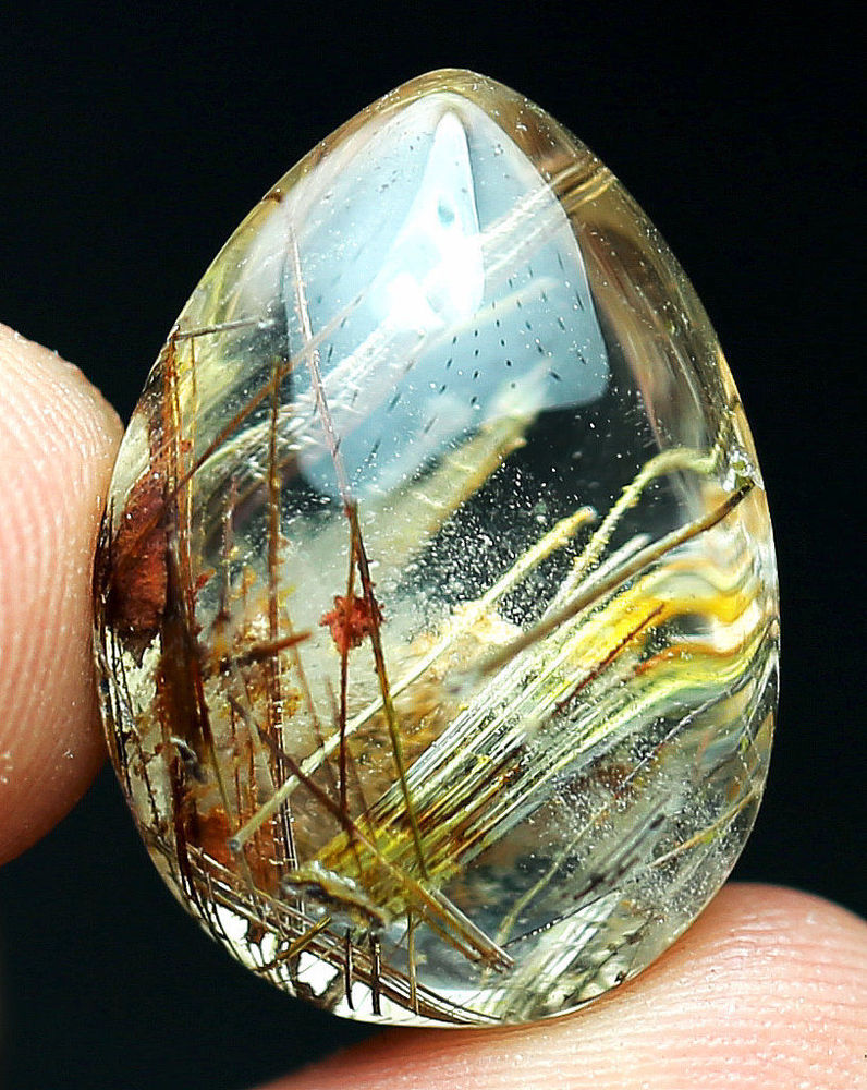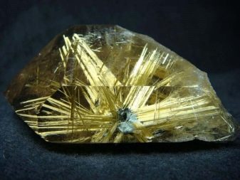 Rutile blotches are more often golden-red or black in color, although from time to time there are instances of gray, green, brown and red rays consisting of goethite or actinolite, tourmaline, rebekit, lepidocrocite and hornblende.