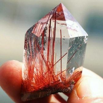 Volosatik is a type of rock crystal, based on silicon dioxide SiO2 with inclusions of titanium dioxide (rutile). It is these inclusions that form thin, randomly located hairs inside the mineral, which make quartz original and original. In most cases, needle-like inclusions are represented as rays, however, sometimes minerals with intricate irregular stars and triangles are found.