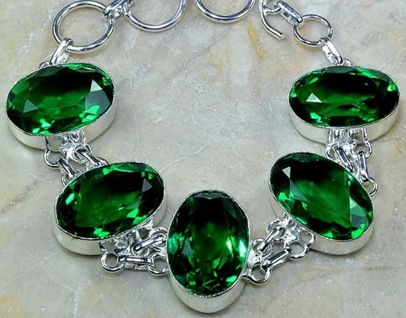 Natural quartz is not as beautiful as we used to consider it. The stone mined in the deposits may have an opaque light or dark green hue, and the usual emerald color is given to the stone in the laboratory by heating it to high temperatures.