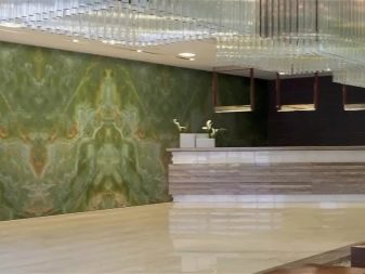 We should also mention that this stone is widely used in interior decoration and design. Very often, natural stone is used to create bar counters, stained glass windows and wall panels. Due to its special structure, the mineral passes light well, thanks to which it is also used to create interior partitions. Besides, Onyx is suitable for decorative decoration of the fireplace, walls in the bathroom or sauna.