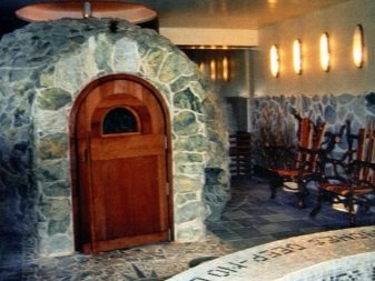 Most often for steam rooms and saunas use crushed stone, although polished can also be used.