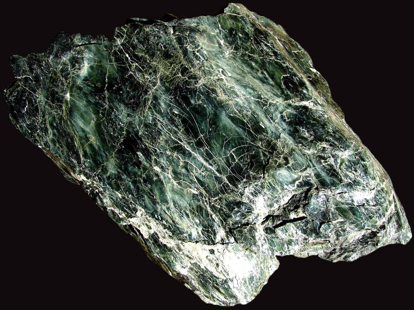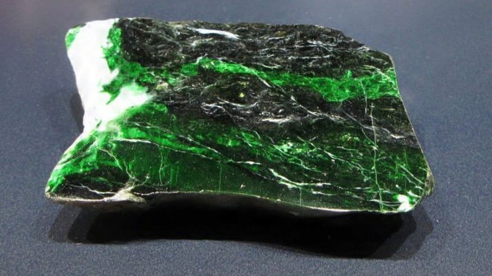 - Vernantitis. The stone is of amazing dark green color with shiny veins, which are inclusions of calcite.