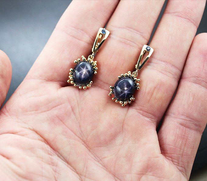 For high-quality care for products with stellar sapphires, you can use a warm solution of water with dishwashing detergent and a soft cloth. Hardware cleaning of this stone is absolutely contraindicated. During operation, these minerals must be protected from contact with acids, especially food.