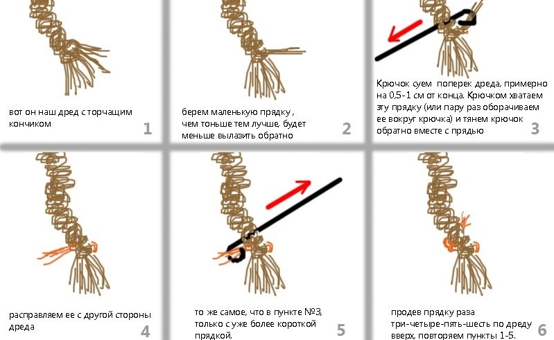 For this method, you need to take the usual crochet hook and finished braids from kanekalon. The latter can be made previously from artificial strands. This way you can lengthen the hair. Make safe dreadlocks like this: