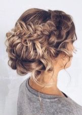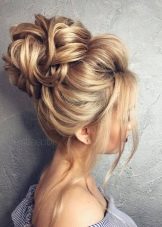 - A bundle or a bun with patch curls can be made independently. Add pigtails, flagella, as well as accessories - and evening hairstyle is ready.