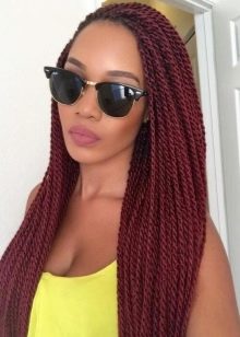 - Senegalese braids (two strands, which in the form of bundles twisted, for example, to the right, and then twisted with each other to the left).