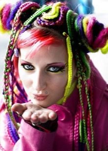 But whether to use a bright image for work, school or university is up to everyone to decide for themselves. Bright is not always stylish and appropriate. Before using unusual curls or pigtails, think over your “outfit” (bow, image) well. Here is an example of the fact that even bright Kanekalon will not be able to hide the bad taste.