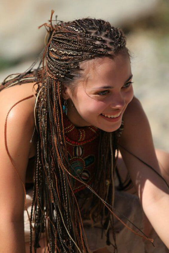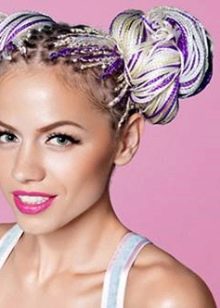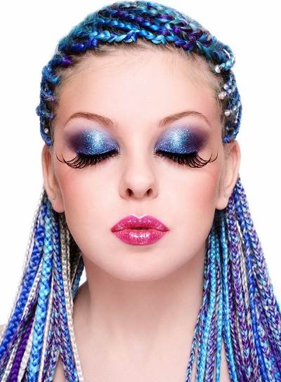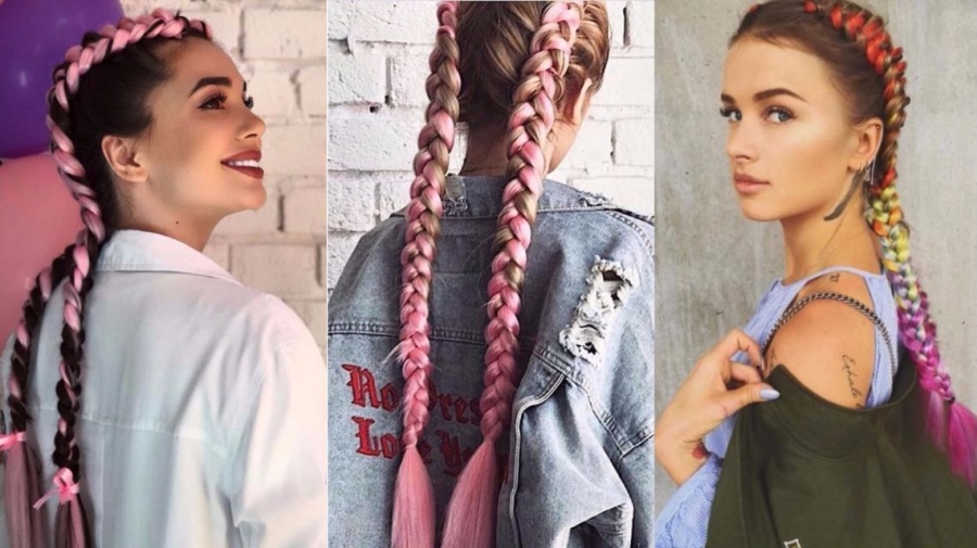 Boxer braids (boxing braids, the common name for hairstyles with Kanekalon) are becoming more diverse due to the material used. If earlier it was only monotonous or multicolored fibers, now artificial hair with the effect of a chameleon (when the sun rays hit they change color) has appeared or the effect of fluorescence (perfect for a club, evening city or night beach). Hairstyles soothing shades can be improved with ribbons, hairpins, other accessories. They will decorate the head and strengthen hair.