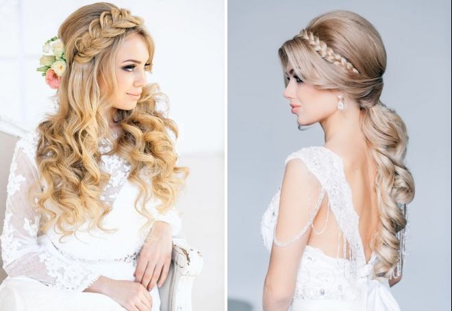 - For long hair, use large curls, curls and decorate it with flowers, headbands or hairpins.
