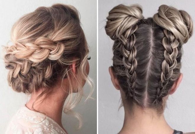 - French braids in the amount of two to four pieces, straight or in a circle;