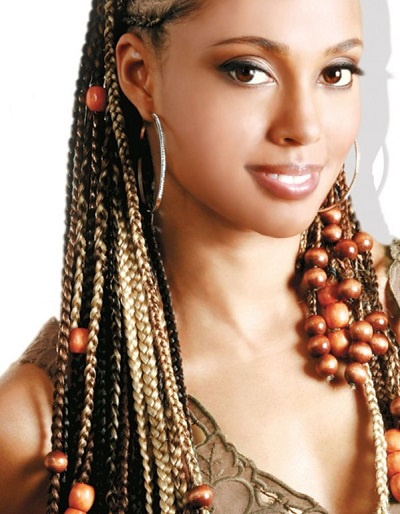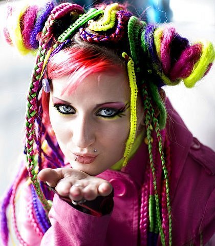 - colored braids may be of one contrasting color with respect to their hair or be of several colors;