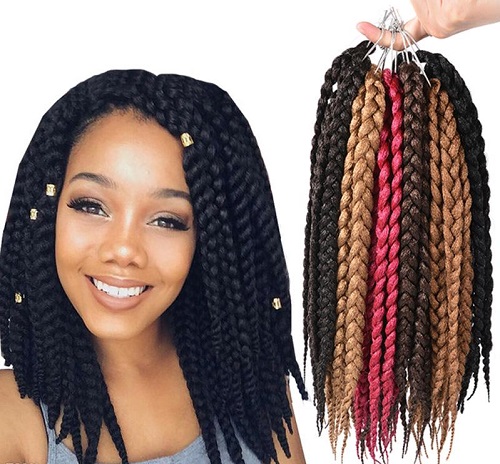 In the past few years, bright monochromatic, multicolored, or ombre effect have gained popularity. The advantage of using bright Kanekalon is that you don’t need to dye your own hair in revolutionary colors, because this hairstyle is not suitable for any “bow”.