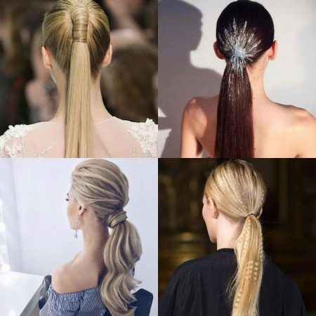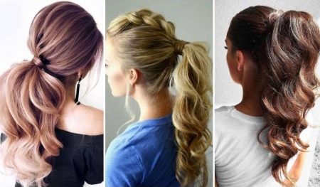 - the tail can be made independently of long hair, placing it high or low, on the side of the temple or on the neck, while the hair can be smooth or curled (curls, curls, ponies).