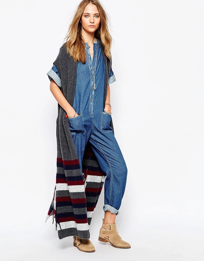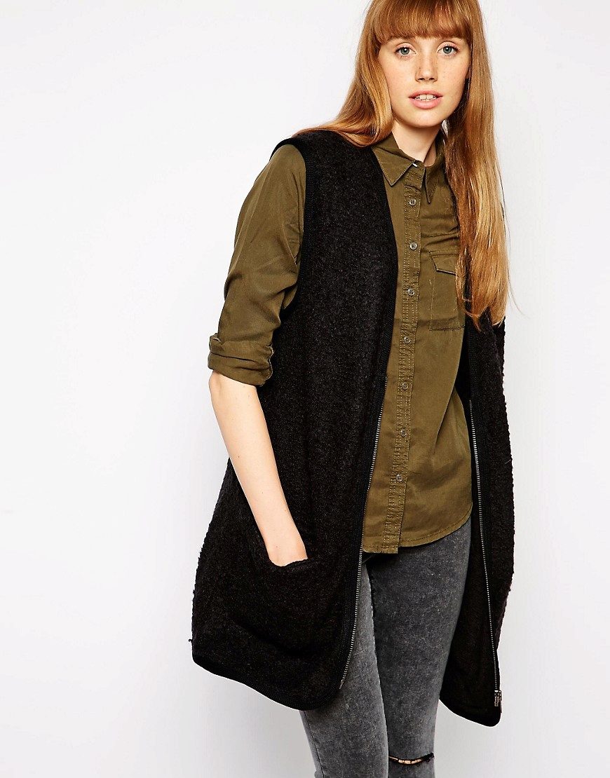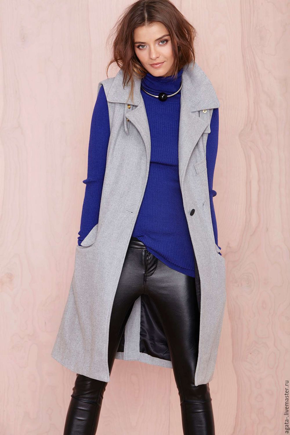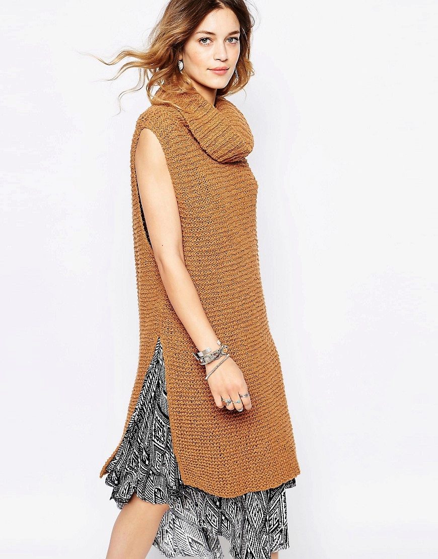 An extended model of a cardigan-sleeveless should be a must-have thing in the wardrobe of every girl who has a couple of extra kilos. Due to its length, it will perfectly hide such problem areas as the buttocks and thighs, and a correctly chosen color or print can change your silhouette beyond recognition, visually stretching it out and making it more slender.