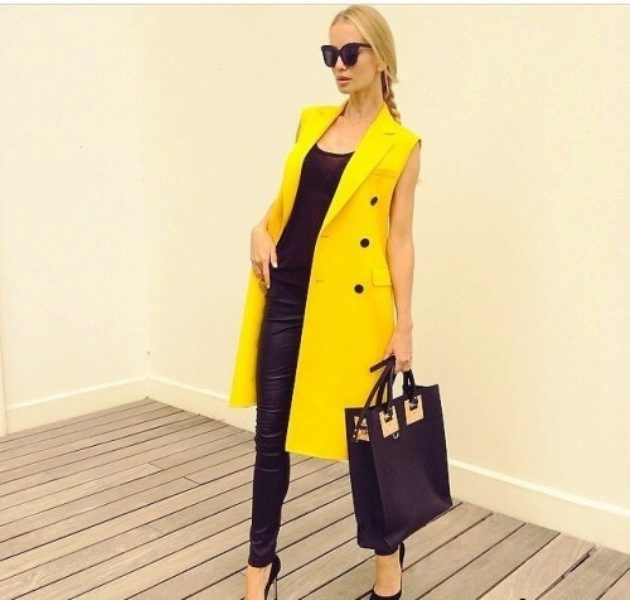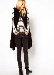 A distinctive feature of the cardigan-sleeveless is that the same model in different images may look completely different. For example, a black knit cardigan with a fitted silhouette on buttons can be safely worn in the office, combining it with a white blouse and strict straight trousers. And if we wear the same model with skinny jeans and a bright top, complementing the image with high heels and a bright handbag, you will get a wonderful ensemble for going to the movies or meeting with friends.
