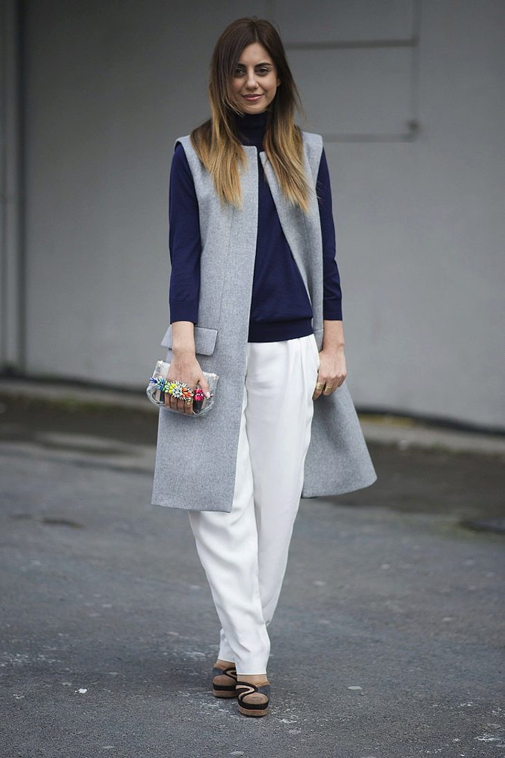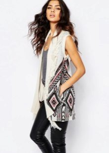 Since a cardigan without sleeves due to its style often acts as an additional element of the image, its color should not be catchy. It is allowed to have a simple print, with the help of which you plan to slightly adjust your figure.