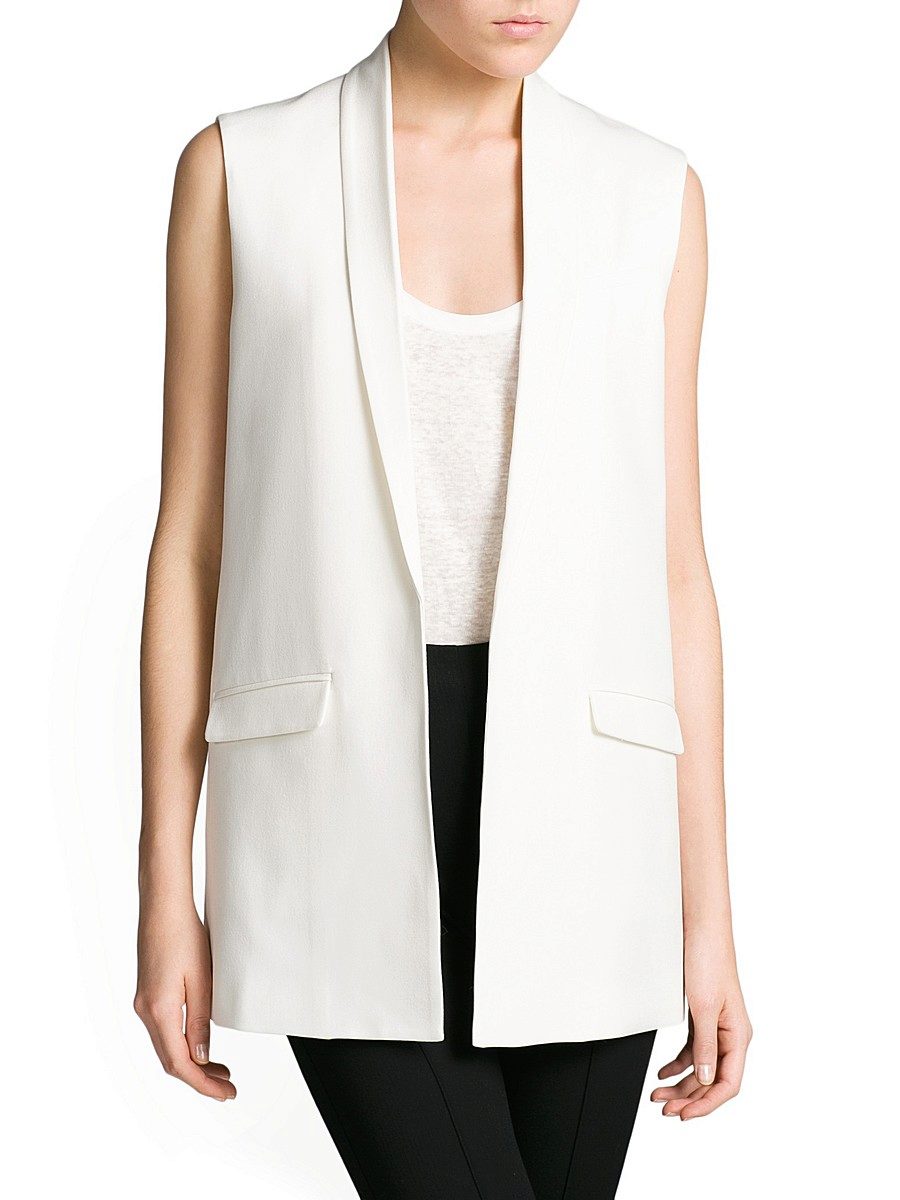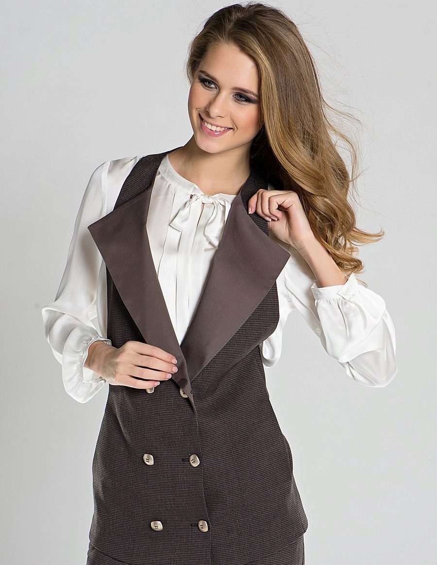 V-neckline collar is a priority in strict business models, but sometimes there are alternatives. For example, a sleeveless cardigan looks very impressive, but with a adjusted collar. It looks a bit like a jacket, but it gives a softer texture of fabric and no sleeves. However, today even the most stringent dress code does not provide for the mandatory wearing of a jacket to work, so a strict cardigan will be quite appropriate in the office.