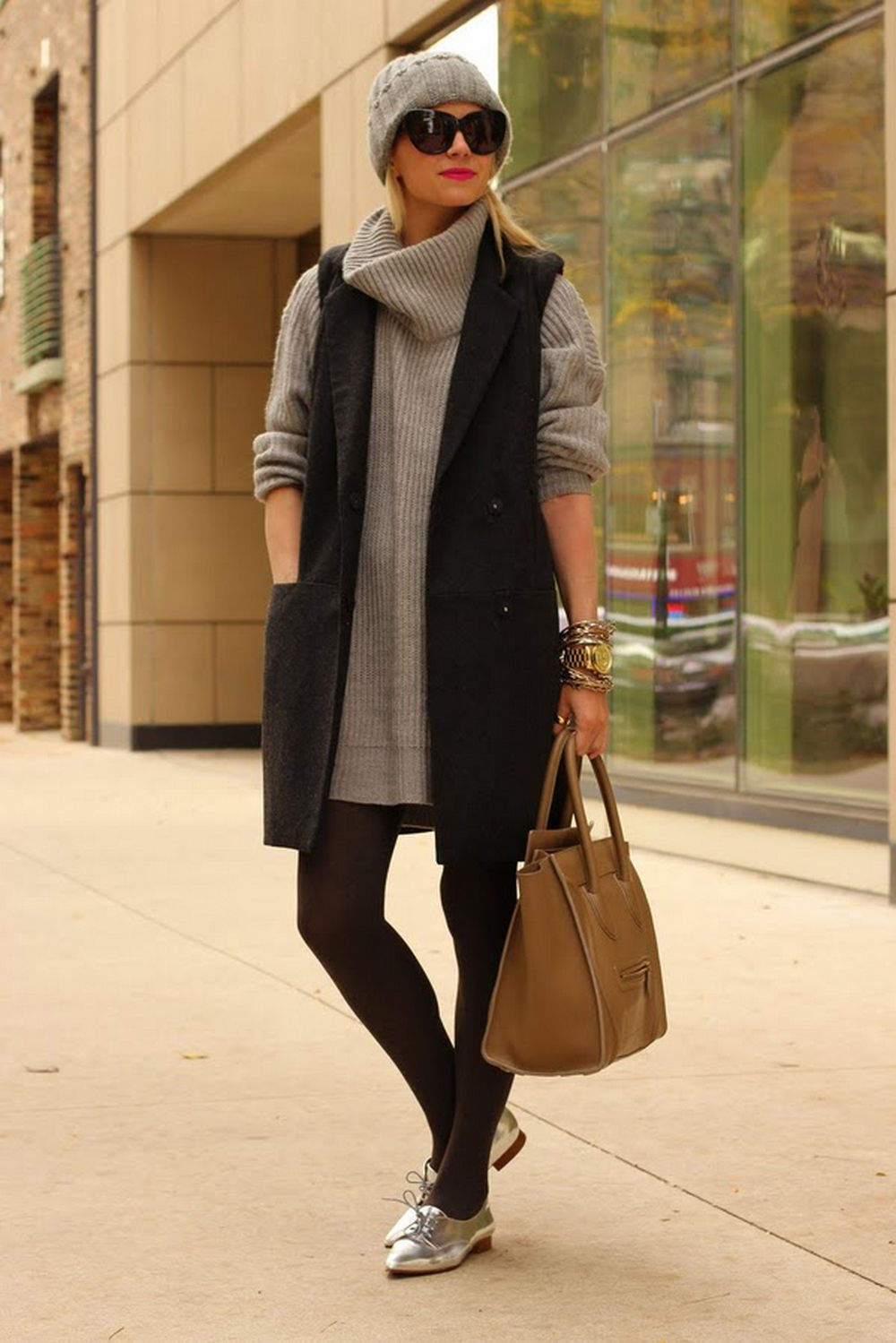 When choosing an ensemble with a sleeveless cardigan as an additional element, the following points should be considered: