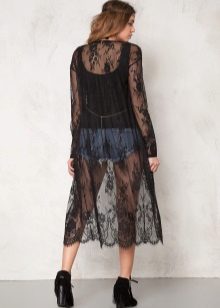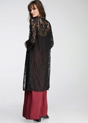 For everyday wear, a mid-thigh cardigan is perfect, or just a little lower, made from thick lace of classic colors.