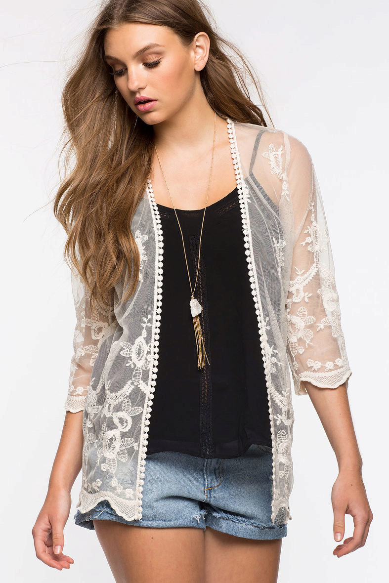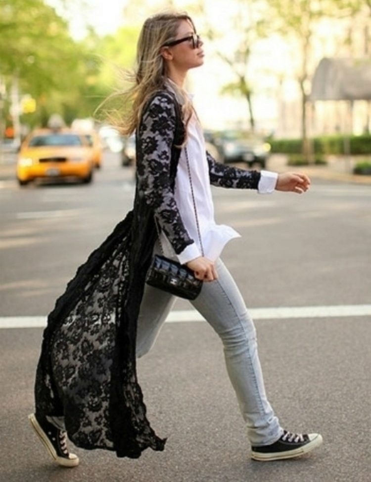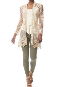 Having one or several lace cardigans of basic colors in your wardrobe, you can combine them with other things in different ways and create interesting, stylish images.