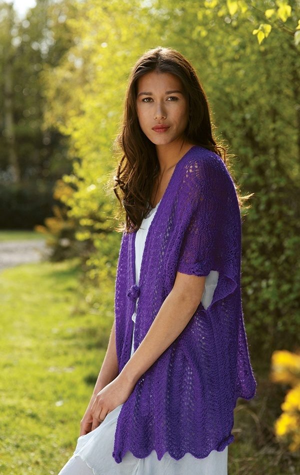 A long snow-white cardigan, made of fine-knit lace, will beautifully set off an evening dress in red, blue or emerald green.