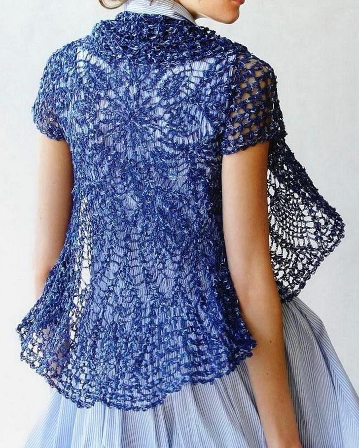 A short lace cardigan in soft pink or another light shade will become an integral part of any fashionable woman’s summer wardrobe. It will perfectly complement the chiffon dress, flared skirt, tank top or top light, pastel colors.